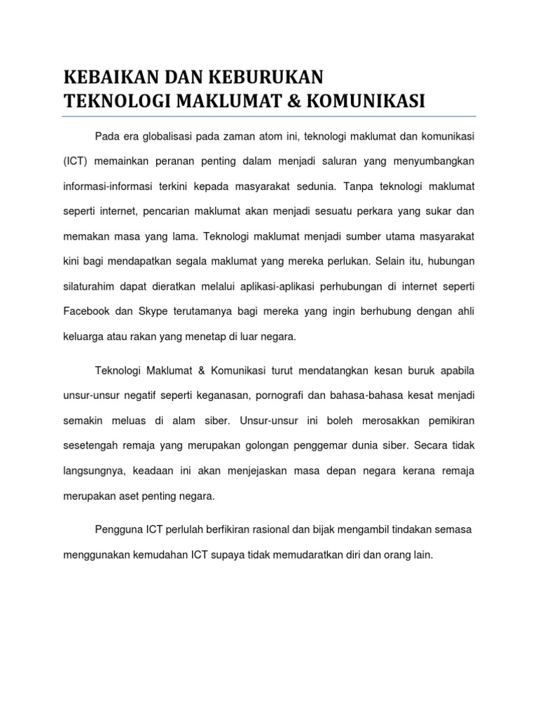 Karangan Kebaikan Teknologi Maklumat Dan Komunikasi Ulisesrkc