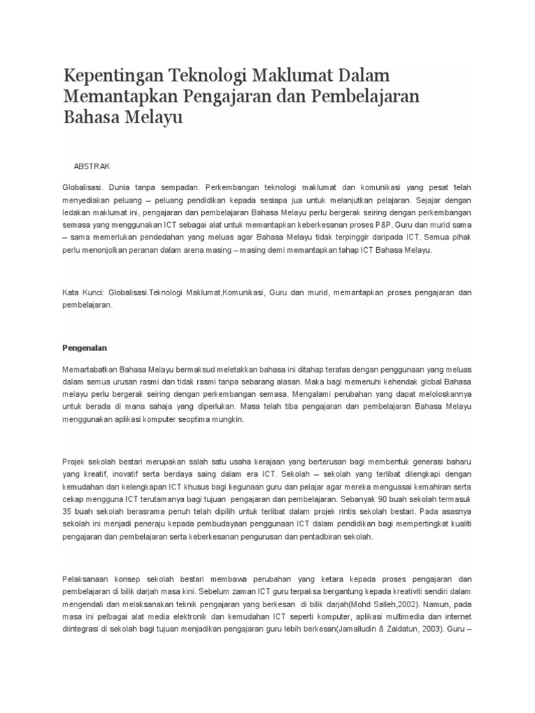 Kepentingan Teknologi Maklumat Dalam Memantapkan Pengajaran Dan Pembelajaran Bahasa Melayu Pdf